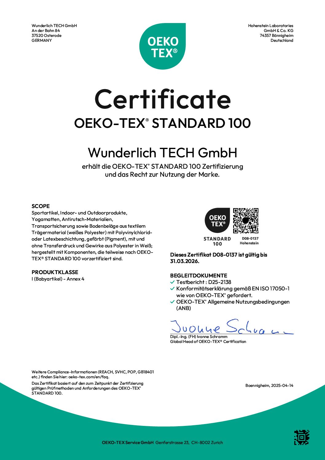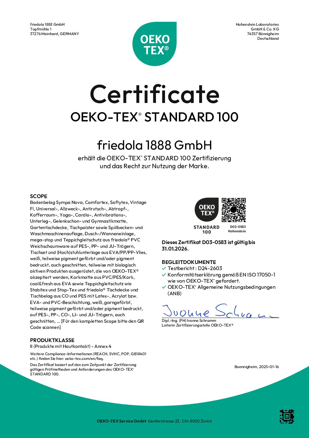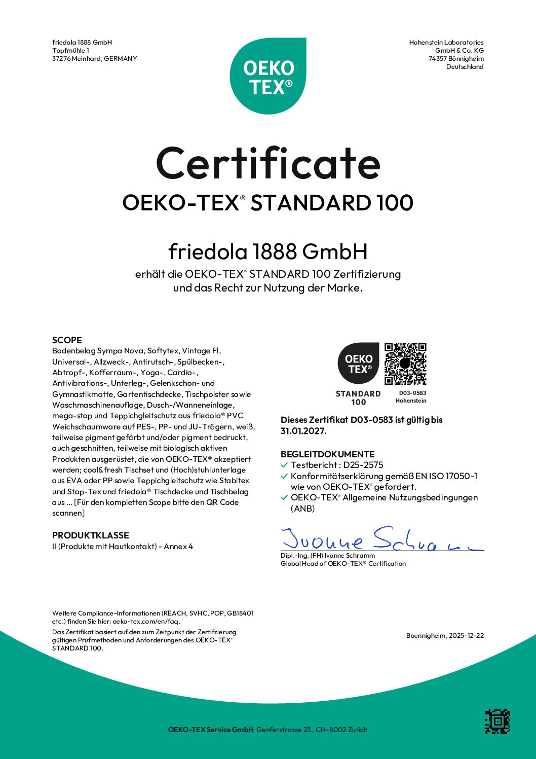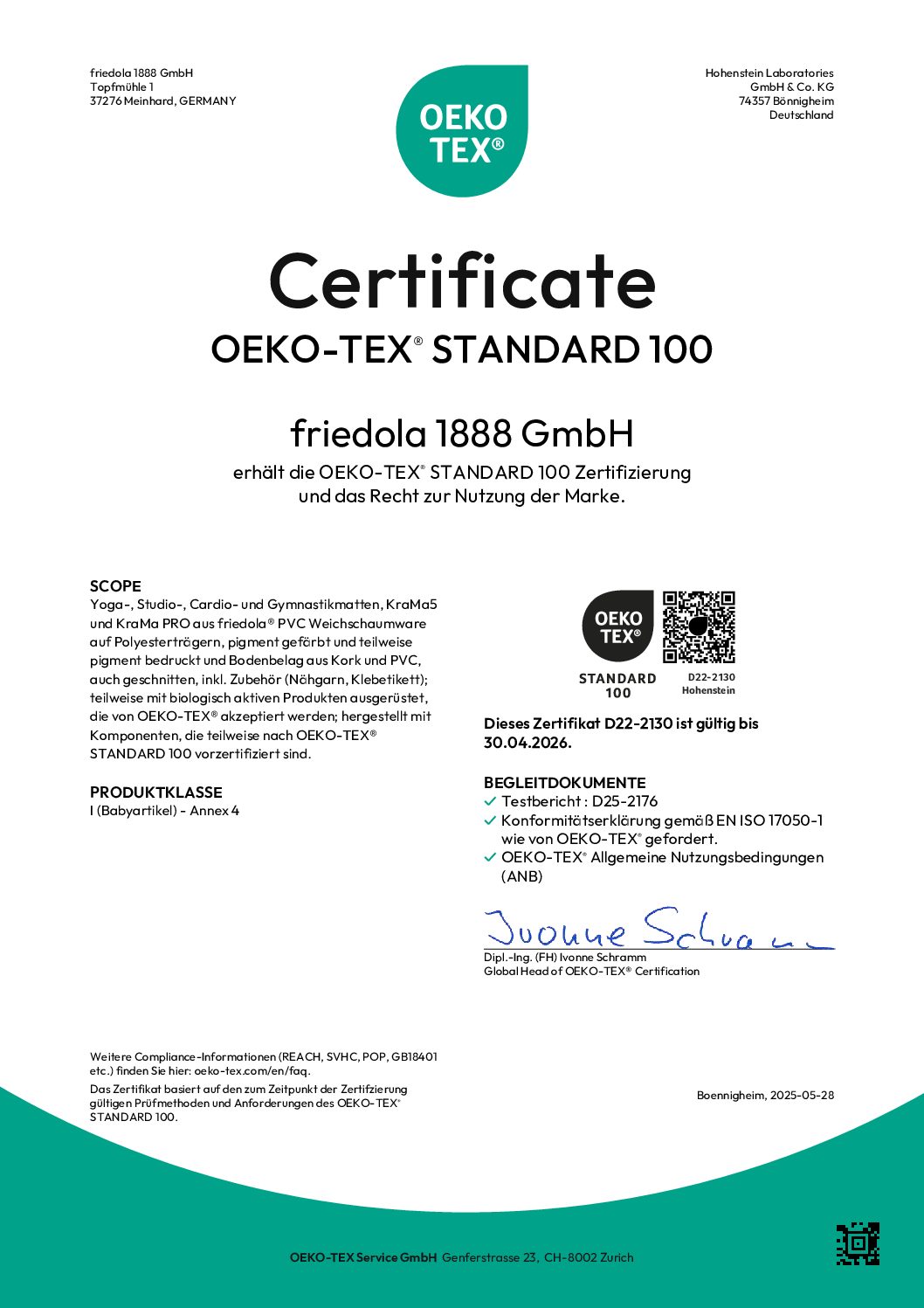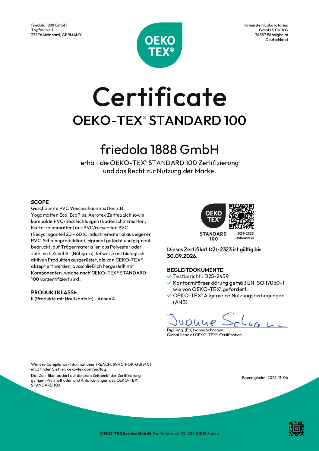 Zertifizierung nach OEKO-TEX® STANDARD 100