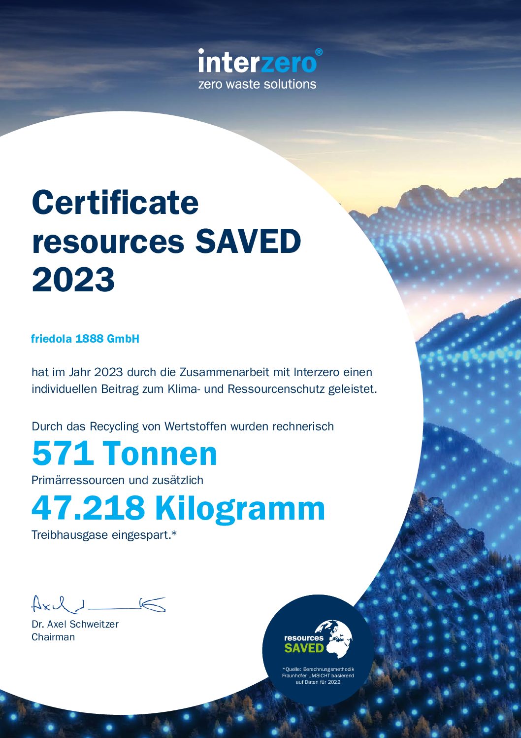 - Beständige Überwachung der Ziele und Weiterentwicklung für Umwelt- und Naturschutz, Nachhaltigkeit und Recycling!