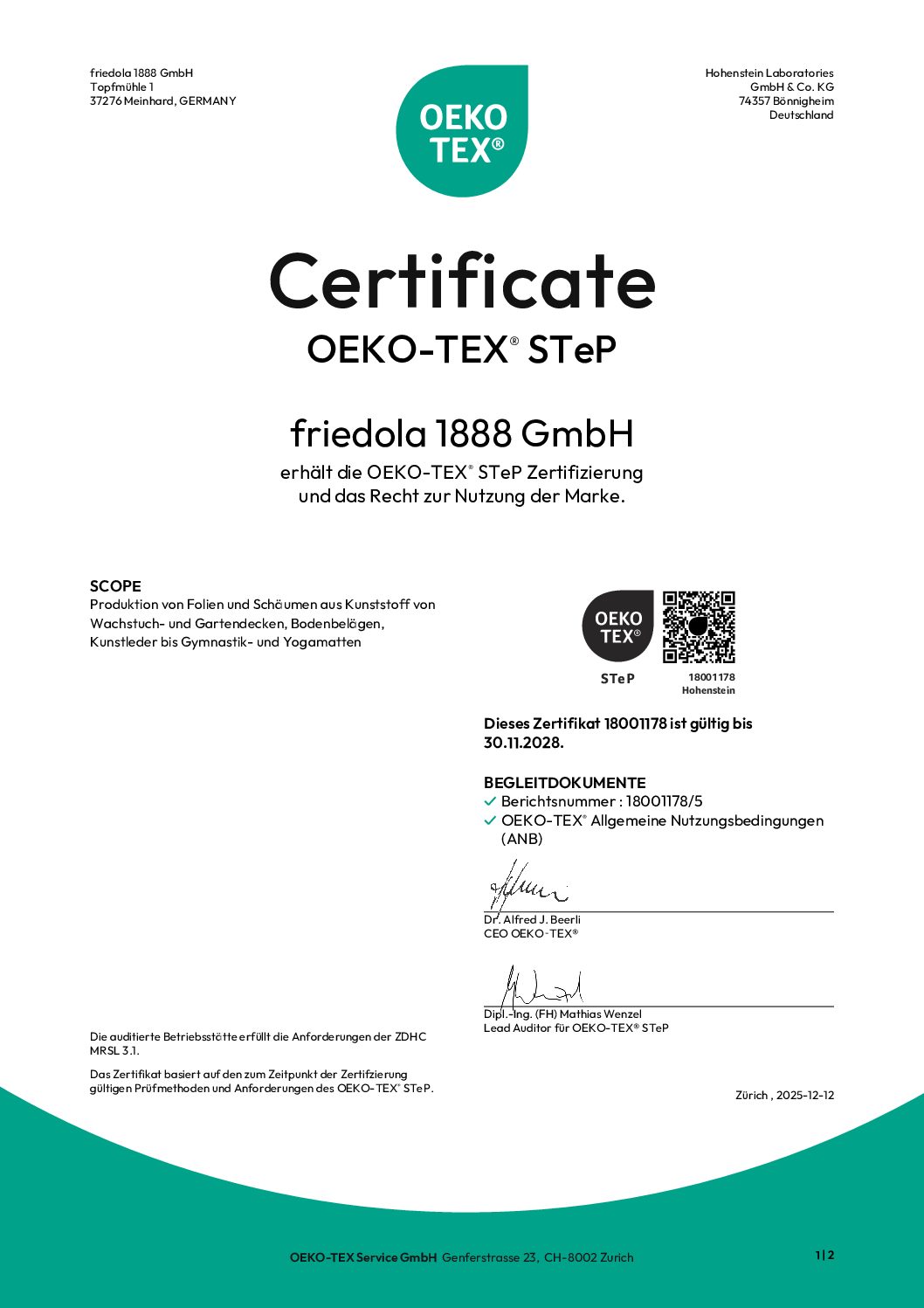 Unser Produktionsstandort ist bestrebt, umweltfreundliche Produktionsprozesse dauerhaft umzusetzen, die Arbeitssicherheit zu verbessern und sozialverträgliche Arbeitsbedingungen zu fördern. Die friedola Betriebsstätte ist auf sozial- und umweltverträgliche Produktionsbedingungen geprüft und nach STeP (Sustainable Textile & Leather Production) by OEKO-TEX® zertifiziert. Die überwiegenden friedola Produkte sind auf ihre gesundheitliche Unbedenklichkeit auf Schadstoffe geprüft und extern nach OEKO-TEX® Standard 100 zertifiziert.